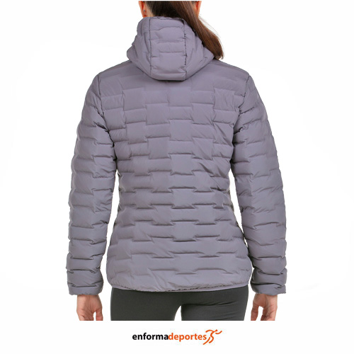 Anorack mujer +8000 DIVAN, confeccionado en tejido exterior tafleta de poliéster con acabado DWR, relleno Sorona Aura de Dupont, de relleno sintético construido en tejido 3D, la característica de este tejido es una construcción de cámaras, para albergar el relleno, sin costuras, lo que aumenta la resistencia de la prenda al agua y al viento, con bolsillos laterales con cremallera, capucha, puños y bajo recogidos con vivo elástico.