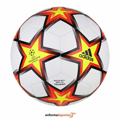 Balón de fútbol ADIDAS UCL TRN PS, con escudo impreso de la Liga de Campeones de la UEFA, con cubierta de TPU, 100% vejiga de butilo y superficie cosida a máquina.