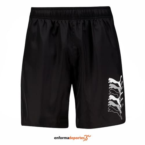 Bañador hombre PUMA SWIM CATS MID, confeccionado en tejido elástico de secado rápido, con cintura ajustable mediante goma y logotipo.
