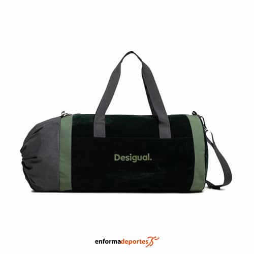 Bolsa de deporte de forma cilíndrica, con un compartimento interior de gran capacidad, cierre de cordón ajustable, dos bolsillos cargo, incluye correa larga para llevar cruzado y doble asa corta. Medidas: 27.5 (l.), 49 (an.), 27.5 (alt.) cm.