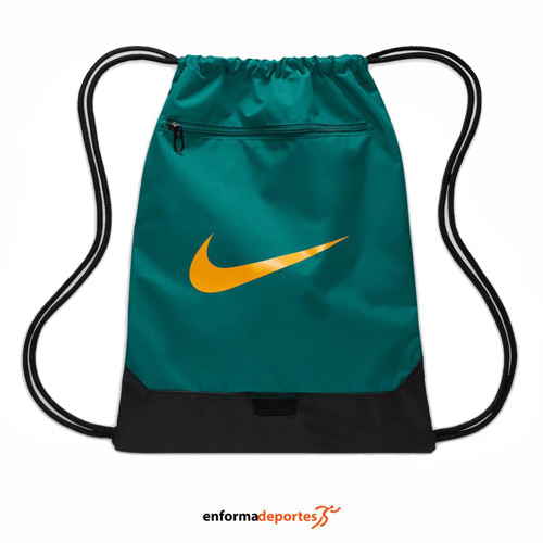 Bolsa NIKE BRASILIA DRAWSTRNG, con capacidad de 18 litros, con apertura superior, cordones para apretar la abertura, con compartimento central, bolsillo frontal con cremallera, fondo reforzado y dimensiones (L x P x A): 50 x 33 x 5 cm.