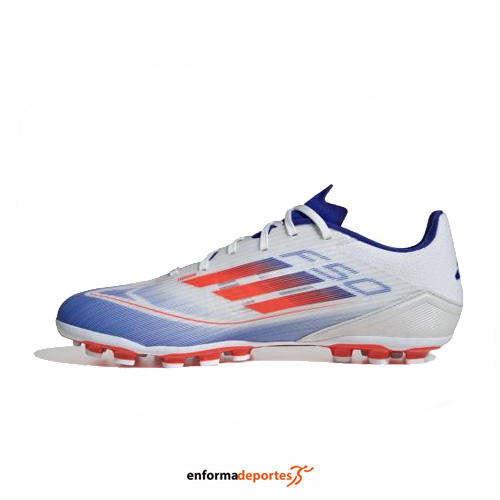 Bota de fútbol ADIDAS F50 LEAGUE 2G/3G AG, confeccionada en material sintético, ideales para la práctica de fútbol en cesped artificial, con más tacos circulares que permiten mayor estabilidad y comodidad, con la parte superior con la tecnología Fiberskin, con una textura Sprintgrid que mejora el control del balón y lengüeta que se ajusta perfectamente para mejorar la compresión del pie.