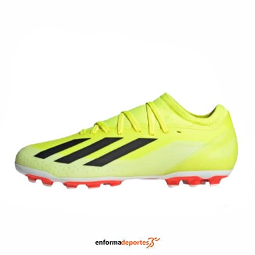 Bota futbol hombre ADIDAS X CREAZYFAST LEAGUE 2G/3G AG, fabricada en material superior duradero y de tacto suave, con acabado con residuos plásticos, cuello de corte bajo con cierre con cordones, para un mayor ajuste, con suela para terreno mixto, suela y tacos optimizados para su uso en terrenos mixtos (cespes artificial, terreno duro y cesped natural), con tacos adicionales del antepié y el diseño de tacos generativos están diseñados para optimizar la tracción y una rápida aceleración, con construcción superior multicapa, capas altamente revestidas con refuerzos solo donde sea necesario, maximizando el bloqueo y el peso ligero.