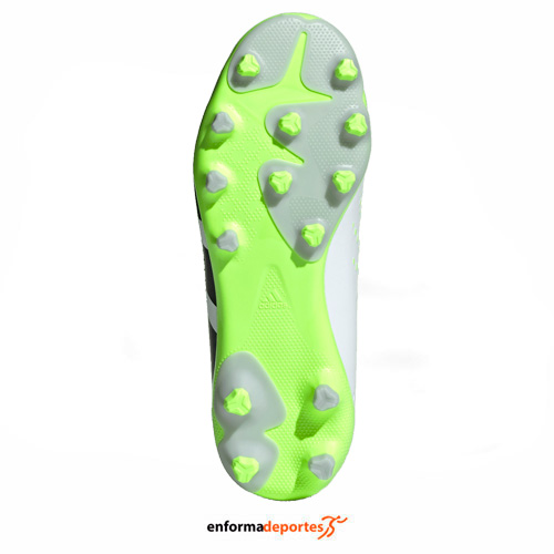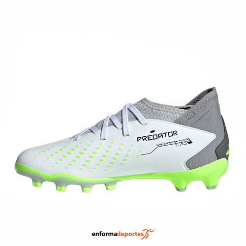 Bota de fútbol junior ADIDAS PREDATOR ACCURACY 3 MG, presenta un antepié textil revestido de tacto suave y resistente al desgaste con tecnología High Definition Texture que proporciona un excelente agarre y control. La suela versátil te permite dominar el juego en campos de césped natural seco, tierra y césped artificial. La parte superior contiene al menos un 50% de material reciclado. Su objetivo es plantear otra solución más que ayude a acabar con los residuos plásticos, de horma clásica, con cierre de cordones, parte superior textil revestida, forro textil y suela con diseño multisuperficie.