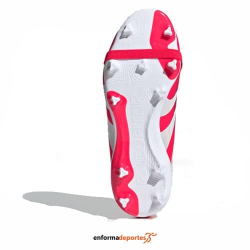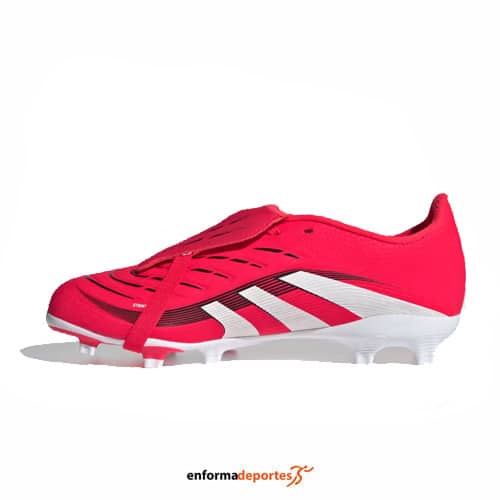 Bota futbol junior ADIDAS PREDATOR LEAGUE FT FG, de horma clásica, con empeine Hybridfeel con inserciones Strikescal, con lengüeta plegable, cierre con cordones y suela para césped natural seco.