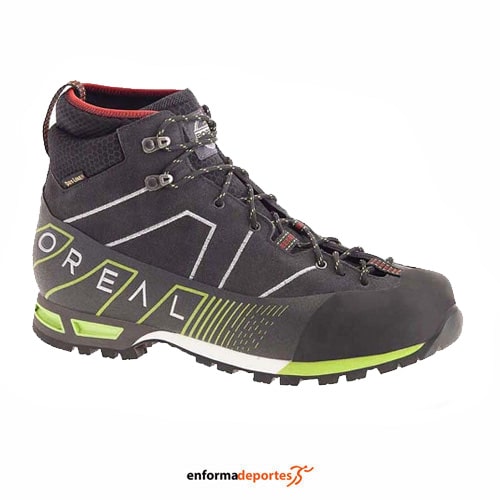 Bota hombre BOREAL DROM MID, confeccionada en piel serraje de 2 mm, con forro con rejilla de poliuretano súper transpirable Moisture-Tech® de Sympatex, con palmilla Boreal PB-60, suela Vibram Pepe de caucho y Eva, con refuerzo perimetral de goma para proporcionar más durabilidad.