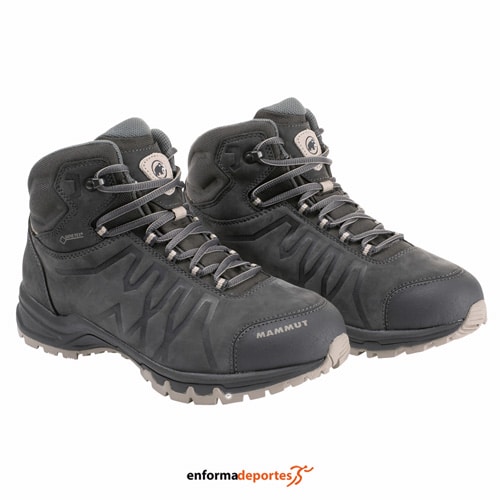 Bota MAMMUT MERCURY III MID GTX, de senderismo, ligera, confeccionada en su parte exterior con cuero terracare®, cuero nobuck / cuero velour / material softshell, proporcionando máxima durabilidad y ligereza, con membrana Gore Tex® Performance Comfort, garantiza impermeabilidad y transpirabilidad, con forro interior le proporciona una comodidad agradable gracias a 3D Memo Foam y suela Vibram® Frog Grip flexible y con agarre combinada con una media suela de cuña EVA suave proporciona agarre y proporciona una muy buena amortiguación.