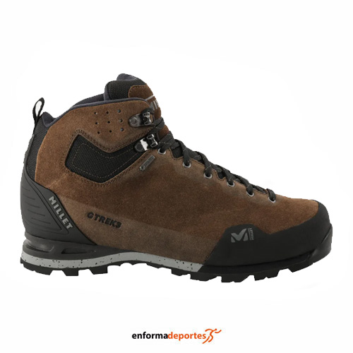 Bota hombre MILLET G TRAK 3 GTX, de caña media de piel vuelta, con entresuela con amortiguación EVA de densidades traseras, con caucho puntera protector, con membrana Gore-Tex – Más temporadas Avance, con cierre con cordones antideslizantes con bloqueo automático, con interior muy cómodo con acolchado adicional en torno al tobillo y suela Vibram® Foura Evo Top Comfort que aporta un gran nivel de bienestar anatómico.