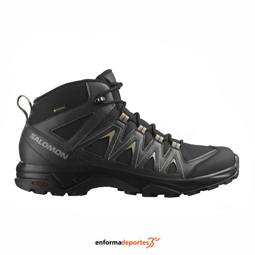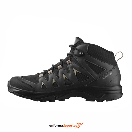 Bota hombre SALOMON X BRAZE MID GTX, ideal para la práctica de senderismo o trekking, con parte superior sintética, forro textil, con membrana con tecnología Gore-Tex que protege eficazmente de la humedad y proporciona transpirabilidad, con suela Contagrip, garantiza un agarre increíble en cualquier superficie y les permite abordar tu caminata con confianza, entresuela está equipada con la tecnología EnergyCell: el retorno de energía te dará una zancada dinámica mientras mantiene un balanceo natural del pie. Además, esta suela proporciona una muy buena amortiguación, plantilla OrthoLite, construcción Sensifit, que garantiza máxima sujeción del pie, con protector guardabarro.