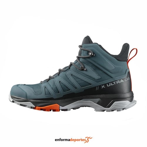 Bota hombre Salomon X ultra 4 mid gtx, confeccionada con malla transpirable y piel que proporciona durabilidad, de media caña, con membrana goretex que proporciona impermeabilidad, con diseño anatómico y ADV-C Chasis que ofrece mayor estabilidad, con cuello acolchado, hidrófuga, suela espuma EVA, con protección antibarro, plantilla OrthoLite® ofrece una amortiguación superior y transpirabilidad y durabilidad, para mejorar la comodidad y el rendimiento de la bota y suela con diseño de tacos de espiga, que garantiza el agarre y mejora la tracción.