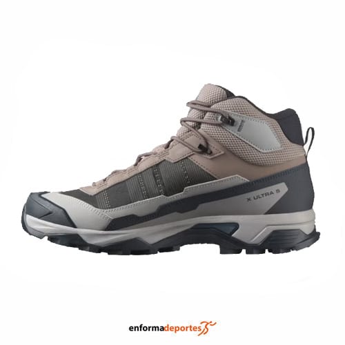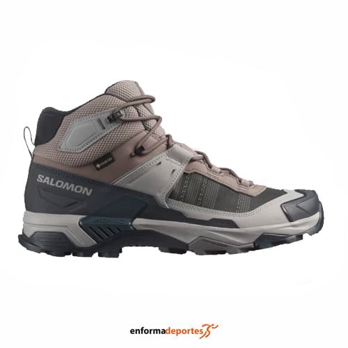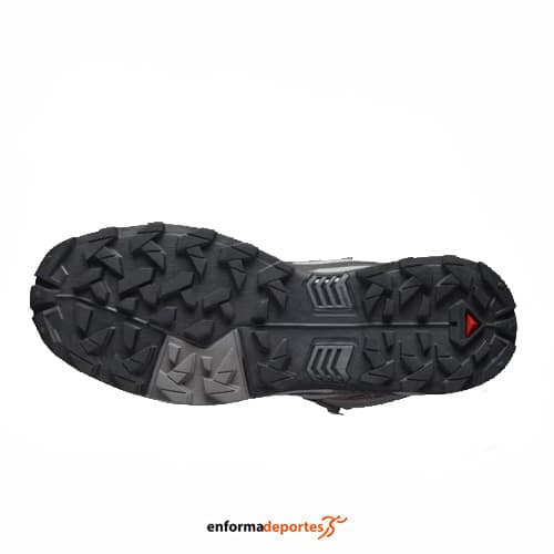 Bota hombre SALOMON X ULTRA 5 MID GTX, fabricadas con una pala de Matryx ultraduradera y con construccion SensiFit, con membrana GORE-TEX que proporciona transpirabilidad y protección frente a humedad, con forro interior de OrthoLite moldeada, entresuela EnergyCell que garantiza una amortiguación moderada, con una duradera suela Contagrip para mayor agarre y tracción, cierre con cordones para un mayor ajuste y drop 11mm.