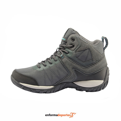 Bota mujer +8000 TOKAN, modelo con membrana WATERPROOF, que nos garantiza una resistencia media al agua. Su parte superior de nylon, nos ofrece a su vez una transpirabilidad muy bienvenida en este tipo de botas. Destacamos su suela exclusiva, con con diseño de tacos y estrías de diferentes formas, que nos proporcionan un agarre muy eficiente. Su tecnología termosellada con fijación de piezas mediante calor y presión evitando costuras innecesarias nos aporta confort y ligereza. Estas cualidades se completan con su puntera de goma, que nos protegerá la zona delantera.
