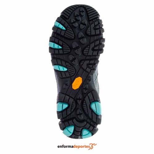 Bota mujer MERRELL MOAB 3 MID GTX, confeccionada en su parte exterior de piel y malla transpirable, con membrana impermeable de GORE-TEX®, con excepcionales propiedades transpirables e impermeables, cierre con cordones y refuerzos 100 % reciclados, lengüeta de fuelle para que no entre tierra, puntera protectora, palmilla moldeada extraíble Kinetic Fit™ ADVANCED con amortiguación reforzada en el talón para un apoyo intermedio, con tecnología Merrell Air Cushion™ del talón absorbe los impactos y aporta estabilidad, tecnología Super Rebound Compound ofrece una absorción duradera de los impactos en el talón para reducir el par de torsión y permitir una transición fluida al mediopié y suela de goma Vibram® TC5+.