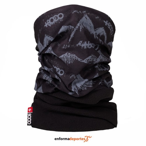 Buff +8000 8BF2405, cuello doble que combina una parte de punto tubular estampado con otra de tejido polar en un lateral, elástico y transpirable y sellado.