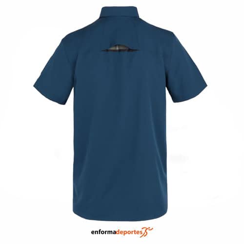 Camisa hombre REGATTA TRAV PACK AWYSS, confeccionada en tejido con tecnología ISOFLEX, tejido elástico activo, poliéster, con acabado hidrófugo duradero, de secado rápido para un mayor confort, ligero, con malla de ventilacion en parte trasera, bolsillo de pecho con cremallera, con protección UV (UPF) y empaquetable en su propio bolsillo.