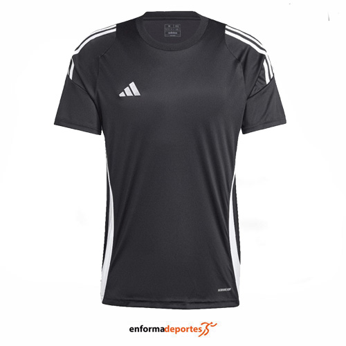 Camiseta hombre ADIDAS TIRO24, de corte entallado, confeccionado en tejido 100% poliéster con tecnología aeroready, con cuello redondo de canalé y con dobladillo trasero más largo.
