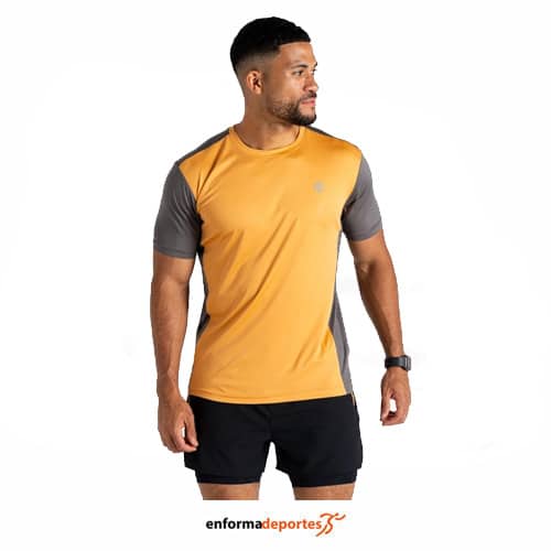 Camiseta hombre DARE2B DISCERNIBLE III, confeccionada en tejido de poliéster ligero reciclado, de secado rápido, suave al tacto que absorbe el sudor, acelera el secado y repele las bacterias que causan olores, con detalles reflectantes.