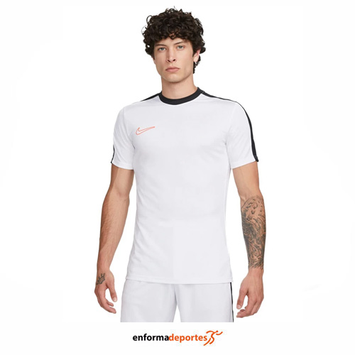 Camiseta hombre NIKE DRI-FIT ACADEMY 23, de corte estándar, confeccionada con tecnología Dri-Fit con capilarización del sudor, sencilla, suave y cómoda, con tecnología Knit, elástica y ligera, con malla transpirable de la parte posterior mantiene la frescura y paneles laterales de malla en la espalda y los hombros para mayor transpirabilidad y frescura.