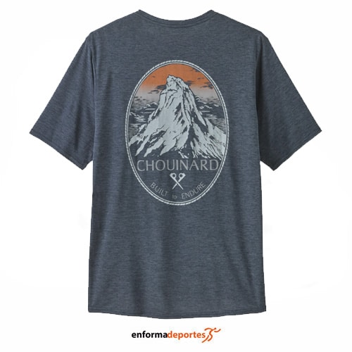 Camiseta hombre PATAGONIA CAP COOL DAILY GRAPHIC SHIRT, confeccionada en tejido jersey 100 % poliéster (50 % reciclado) con un acabado absorbente y control de olores HeiQ® Mint para mantener las cosas frescas, tela elástica de secado rápido, con mangas ajustadas para un mayor movimiento y costuras míminas para reducir rozaduras.
