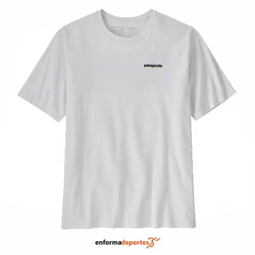 Camiseta  hombre PATAGONIA P6 LOGO HOODY, confeccionada en tejido de punto suave  mezcla 50/50 de algodón reciclado y poliéster reciclado posconsumo, de manga corta, con cuello redondo, con ribetes y costuras selladas. Con dobladillo recto.