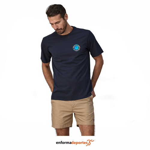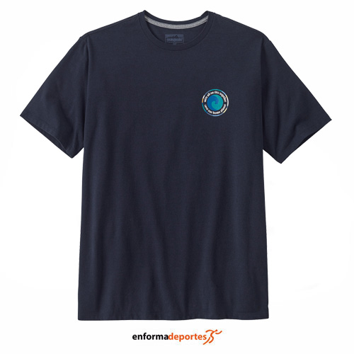 Camiseta hombre PATAGONIA UNITY FITZ, confeccionada en tejido de punto suave con una mezcla 50/50 de algodón reciclado y poliéster reciclado posconsumo, con cuello redondo es clásico y versátil con ribetes en el cuello y las costuras selladas en los hombros ofrecen comodidad y retención del ajuste, con dobladillo recto y se puede usar metida o desmetida.