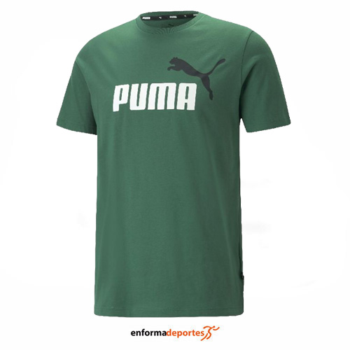 Camiseta hombre PUMA ESS+ 2 COL LOGO, confeccionada en tejido algodón, de corte estandar, manga corta, cuello redondo de canalé y logo de puma en el pecho.