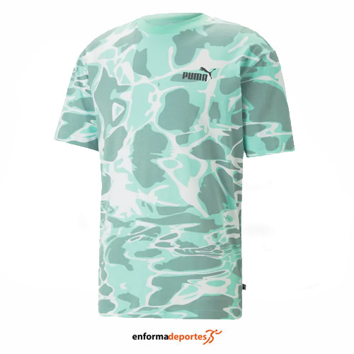 Camiseta hombre PUMA SUMMER SPLASH AOP, confeccionada en tejido algodón, de corte holgado, con cuello redondo y manga corta.