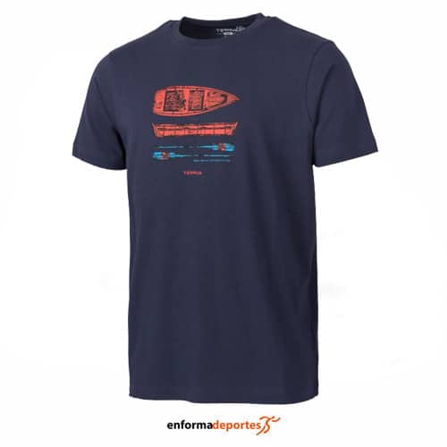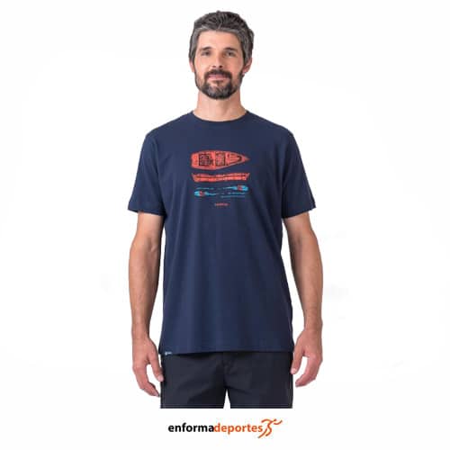 Camiseta hombre TERNUA COLINET, de corte estándar, cuello redondo y manga corta, confeccionada en algodón orgánico y reciclado, tejido Ecolife E–best, de manga corta con gráficos multicolores del proyecto Wearcycle.