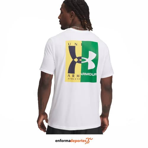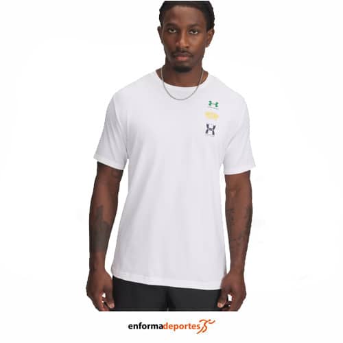 Camiseta hombre UNDER ARMOUR 40/60S EVOL LOGO, de corte estandar, manga corta, cuello redondo y acanalado, confeccionada en tejido muy suave de mezcla de algodón que proporciona comodidad.
