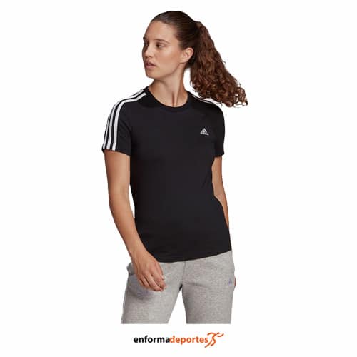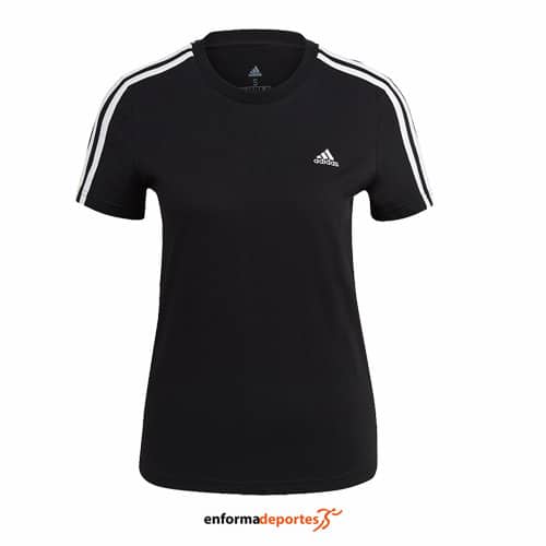 Camiseta ADIDAS 3S T, de mujer, de corte entallado, confeccionada en algodón, cuello redondo y manga corta.