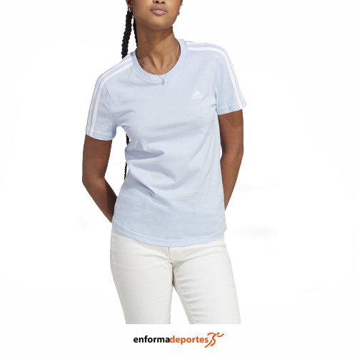 Camiseta mujer ADIDAS 3S T, de corte ajustado, manga corta y cuello redondo.
