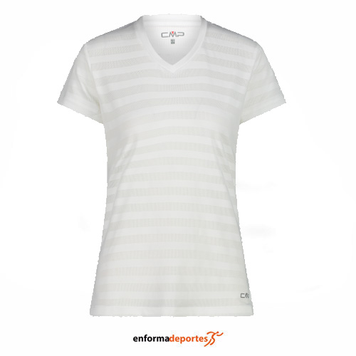 Camiseta mujer CMP, de manga corta, con detalles de malla horizontal que aumenta la transpirabilidad, confeccionada en tejido elástico en cuatro direcciones proporciona libertad de movimiento, con tratamiento que frena la aparición de malos olores asegura máximos niveles de confort y sensación de bienestar.