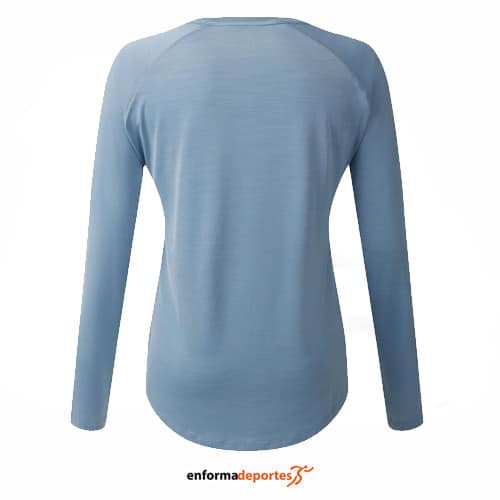 Camiseta mujer DARE2B DISCERN, confeccionada con tejido Q-Wic de secado rápido, con tratamiento antibacteriano, manga larga, corte ajustado y cuello redondo.