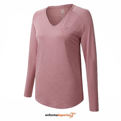 Camiseta mujer DARE2B DISCERN, confeccionada con tejido Q-Wic de secado rápido, con tratamiento antibacteriano, manga larga, corte ajustado y cuello redondo.