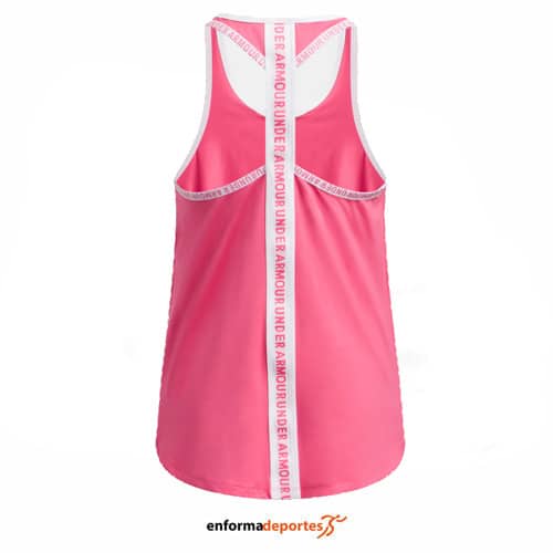 Camiseta mujer UNDER ARMOUR TECH KNOCKOUT, confeccionada en tejido increíblemente suave y transpirable, material elástico en 4 direcciones que permite una mayor movilidad en cualquier dirección y que capilariza el sudor y se seca rápidamente, con tirantes en forma de T en la espalda con el nombre de la marca, con bajo contorneado y más largo para una mayor protección.
