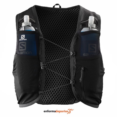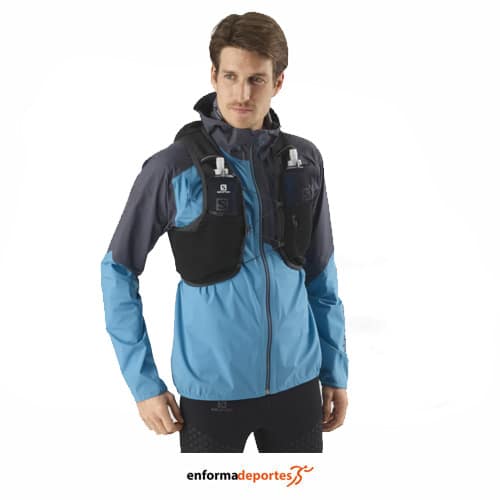 Chaleco de hidratación SALOMON ACTIVE SKIN 8 SET, confeccionado en tejido de rápida absorción, con tejido SensiFit, tejido elástico y transpirable que proporciona comodidad, y gran libertad de movimientos, con correa Quick link, que permite un mejor ajuste, incluye 2 bidones blandos (500 ml), llavero y varias soluciones de portabastones, compartimento trasero grande con amplia abertura, dos bolsillos frontales elásticos para bidones blandos de 500 ml, salida para tubo de bolsa de hidratación, compartimento para el agua con sistema de agarre, capacidad 8 litros y peso total 252g.