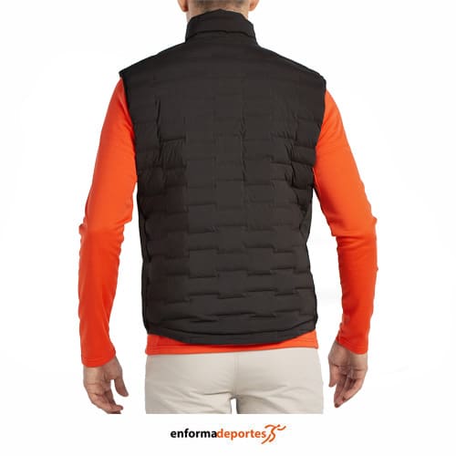 Chaleco técnico +8000 WITE, con aislamiento térmico, confeccionado en tejido 3D bi-elástico de doble construcción, crea cámaras sin costuras que alojan el aislante térmico, lo que permite una excelente libertad de movimiento y mejora la repelencia al agua gracias a su acabado DWR (libre de PFC), con relleno Sorona® Aura de DuPont™ proporciona un aislamiento térmico eficiente, gran ligereza y resistencia al agua, ideal para climas variables. Incluye bolsillos laterales con cremallera, un tercer bolsillo en el pecho con cremallera invisible, y acabados elásticos en el bajo y sisas para un ajuste cómodo y funcional.