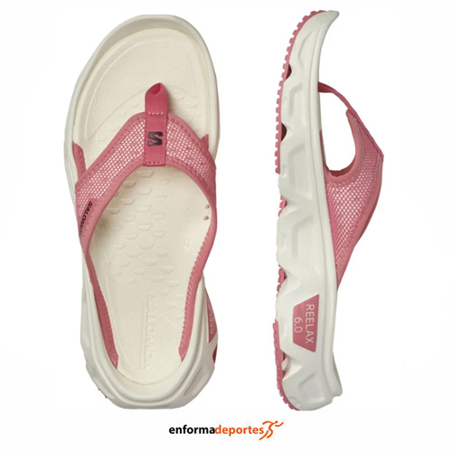 Chanclas mujer SALOMON RELAX BREAK 6.0, calzado de recuperación, cuenta con una suave correa ventilada en la plantilla mullida de EVA para una sujeción del pie holgada y una gran comodidad. Ultraversátil, ponible y muy eficaz a la hora de ayudar en tu recuperación después de darlo todo.