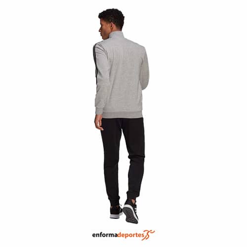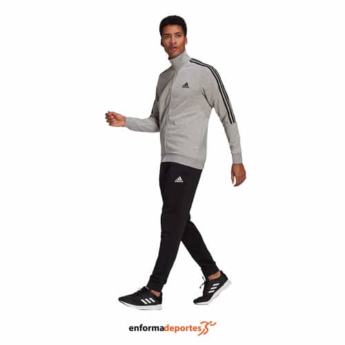 Chandal hombre ADIDAS 3S FT TT TS, confeccionado con tejido transpirable Aeroready, consta de chaqueta y pantalón. Pantalón con bolsillos laterales con cremallera, con cierre con cremallera y cuello alzado, con dobladillo y puños elásticos en la chaqueta.