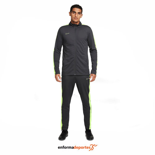 Chándal hombre NIKE DF ACADEMY 23 TRK SUIT, confeccionado en tejido poliester con tecnología Dri-Fit que capilariza el sudor, favoreciendo una rápida evaporación y garantizando un uso seco y cómodo, con malla en el cuello y la cintura proporciona ventilación y una sensación de frescor, con chaqueta con cierre con cremallera y bolsillos laterales, con pantalón con cintura elástica y bolsillos laterales con cremallera.