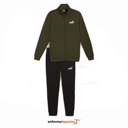 Chándal hombre PUMA CLEAN SWEAT SUIT FL, confeccionado en tejido algodón y poliéster, con parte superior chaqueta con interior de felpa, con cierre con cremallera completa y con bolsillos laterales, los pantalones para guardar tus pertenencias cómodamente, con cinturilla elástica con cordón interior, con interior de felpa y con bajo acabado en puño.