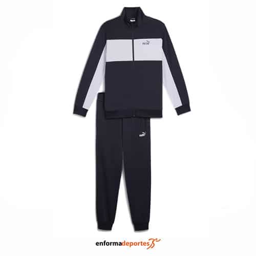 Chandal hombre PUMA POLY COLORBLOCK, confeccionado en tejido poliester, con chaqueta con cuello alto, con puños y cintura acanalados, cierre con cremallera completa y pantalon con cintura elástica, puños acanalados y bolsillos laterales.