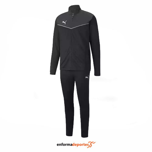 Chandal hombre PUMA INDIVIDUAL RISE TRACK, de corte regular, confeccionado en tejido 1005 poliéster, con sudadera con cuello alto, de secado rápido, con cierre con cremallera y puños elásticos. Pantalón con cintura elástica, con bolsillos laterales y puños elásticos.