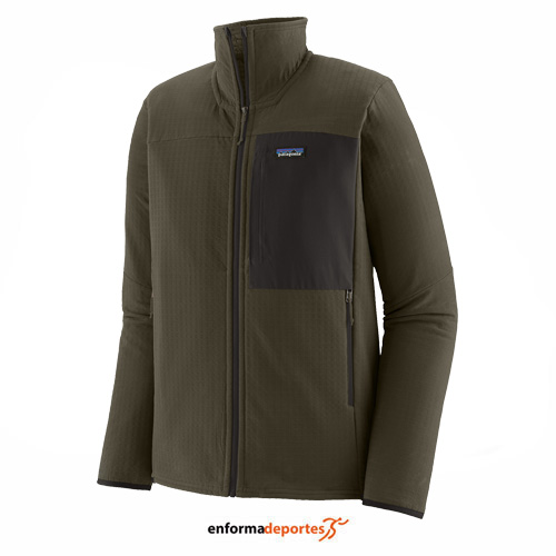 Chaqueta hombre PATAGONIA r2 TECHFACE, doble trama de gran espesor es suave y cálida, con un acabado repelente al agua duradero (DWR) elaborado sin químicos perfluorados (PFC/PFAS), con cremallera central delantera con un suave ribete en el mentón para una comodidad en contacto con la piel, bolsillo en el pecho con cremallera y dos bolsillos altos para calentar las manos tienen un acabado impecable y son compatibles con arneses y mochilas; dos bolsillos interiores tipo sobre, con puños elegantes, de poco volumen y resistentes a enganches con dobladillo conserva el calor.