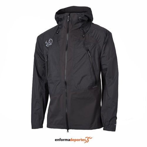 Chaqueta hombre TERNUA KARS, técnica muy ligera de 2.5 capas impermeable, transpirable, resistente y muy comprimible, con patrón pre-formado y el tejido semi-elástico que garantizan una buena libertad de movimientos y confort de uso para todo tipo de actividades de montaña, construcción en 2 tejidos, uno de ellos con ripstop, para refuerzo de las partes más expuestas, con costuras termoselladas y cremalleras resistentes al agua, columna de agua de 20.000 mm y transpirabilidad de MVP 20.000 g x m2 x 24h, con capucha 3D ajustable, cremalleras frontales de pecho, con bajo ajustable con tancas, puños elásticos, con tratamiento repelente al agua libre de PFC’s.