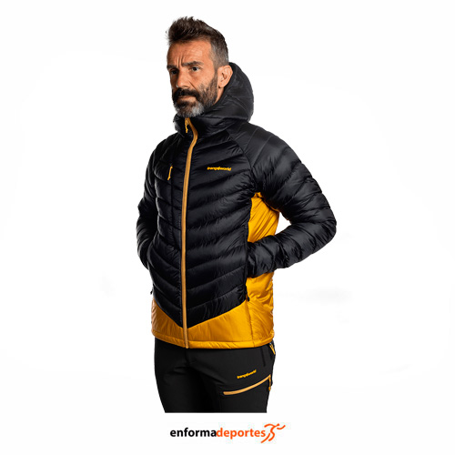 Chaqueta hombre TRANGOWORDL MEDEL, de corte técnico, con capacidad térmica, cómoda y ligera, repelente al agua libre de PFC, con capucha fija ajustada con ceñidor elástico, manga ranglán, ceñidor en bajo elástico, cierre tanka y bolsillos con cierre con cremallera.