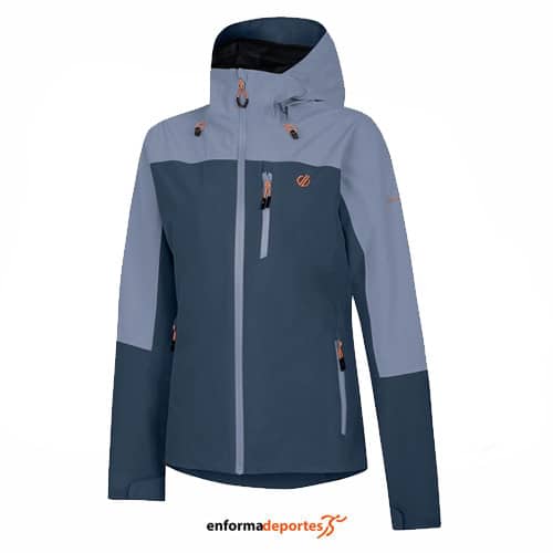 Chaqueta mujer DARE2B TORREK, confeccionada en tejido ARED 30/30, garantiza una barrera impermeable y altamente transpirable contra los elementos y gran flexibilidad gracias a su diseño elástico reciclado, con costuras selladas y acabado repelente al agua duradero te mantendrán seca y cómoda, una capucha técnica plegable con visera de alambre, con bolsillo en el pecho y dos bolsillos inferiores, con cremalleras repelentes al agua, con puños y dobladillo ajustables, con interior de forro de malla reciclada, aseguran un ajuste personalizado y una ventilación óptima.