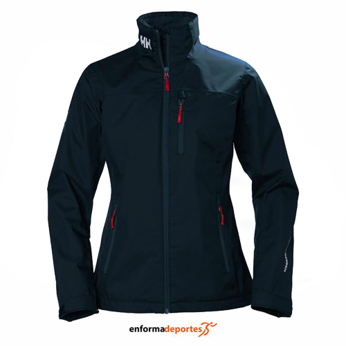 Chaqueta mujer HELLY HANSEN CREW, confeccionada en tejido HELLY TECH® Protection, en 2 capas, con costuras totalmente selladas, cómodo forro interior de secado rápido, largo hasta la cadera, puños ajustables y bolsillos con cremallera.