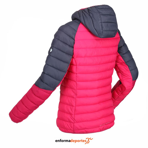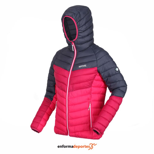 Chaqueta mujer REGATTA HARROCK, elegante, sostenible y sin plumas, nuestra Harrock, con un aislamiento ligero reciclado, con acabado repelente al agua, con diseño acolchado, con capucha, cierre completo de cremallera y bolsillos laterales con cremallera.