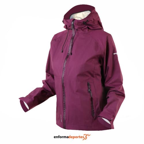 Chaqueta mujer TXELL SPHERE PRO, confeccionada en poliéster y tejido elástico, con tratamiento DWR repelente al agua, corta viento y con cremalleras waterproof, con cremallera central y de bolsillos invertidos repelentes al agua, cremallera de ventilación en axilas, protector de barbilla, cordón elástico regulable en capucha y en bajo, puños con velcro, costuras termo-selladas.